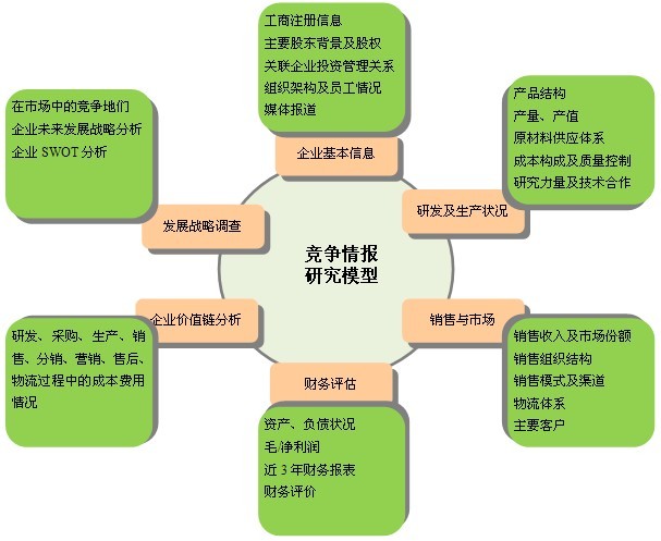 競(jìng)爭(zhēng)情報(bào)研究是關(guān)于競(jìng)爭(zhēng)環(huán)境、競(jìng)爭(zhēng)對(duì)手和競(jìng)爭(zhēng)策略的調(diào)查研究,是根據(jù)客戶(hù)的要求,通過(guò)合法手段,針對(duì)特定行業(yè)的競(jìng)爭(zhēng)對(duì)手企業(yè)或潛在競(jìng)爭(zhēng)情況進(jìn)行的調(diào)研。競(jìng)爭(zhēng)情報(bào)研究是一種系統(tǒng)的、合法的研究活動(dòng);是一種產(chǎn)品和服務(wù),研究關(guān)注的重點(diǎn)是企業(yè)外部那些影響企業(yè)戰(zhàn)略和策略決策的因素。